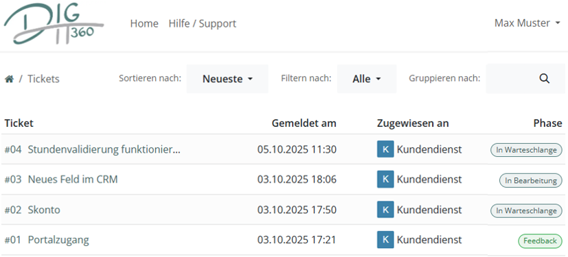 Immediately after submitting your request for help and support, you will receive a confirmation email. You can view the progress at any time via your personal customer portal.